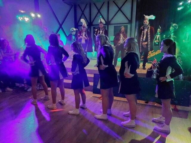 Bij de carnavalsoptocht en in de feesttent daarna.